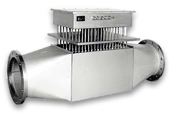 Air heaters for mounting on pipes; with flange connections for installation in pipelines.
