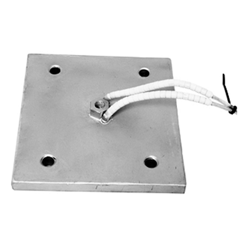 Flat heating element with capsulated ceramic insulation: Various terminations, stainless steel backing plate & thermocouple brackets optional. Custom manufacture & standards for the plastics industry.
